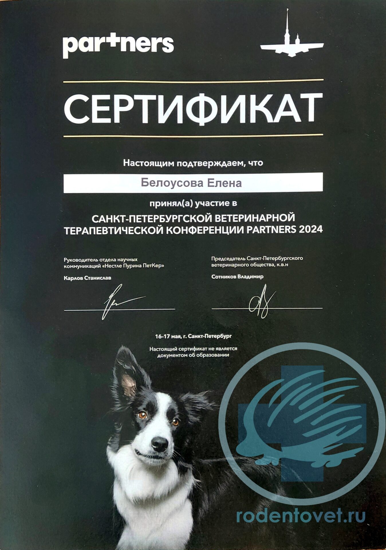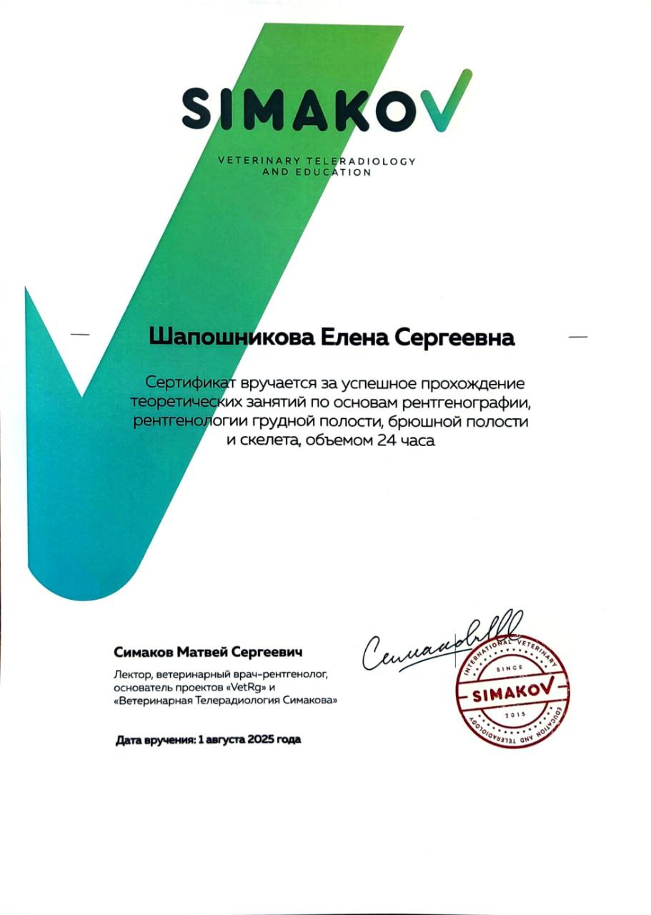 Основой её подхода является доказательная ветеринарная медицина. Для совершенствования в выбранных направлениях целенаправленно проходит обучение у ведущих российских специалистов, регулярно участвует в профильных конференциях и мастер-классах, фокусируясь на практическом применении новых знаний.