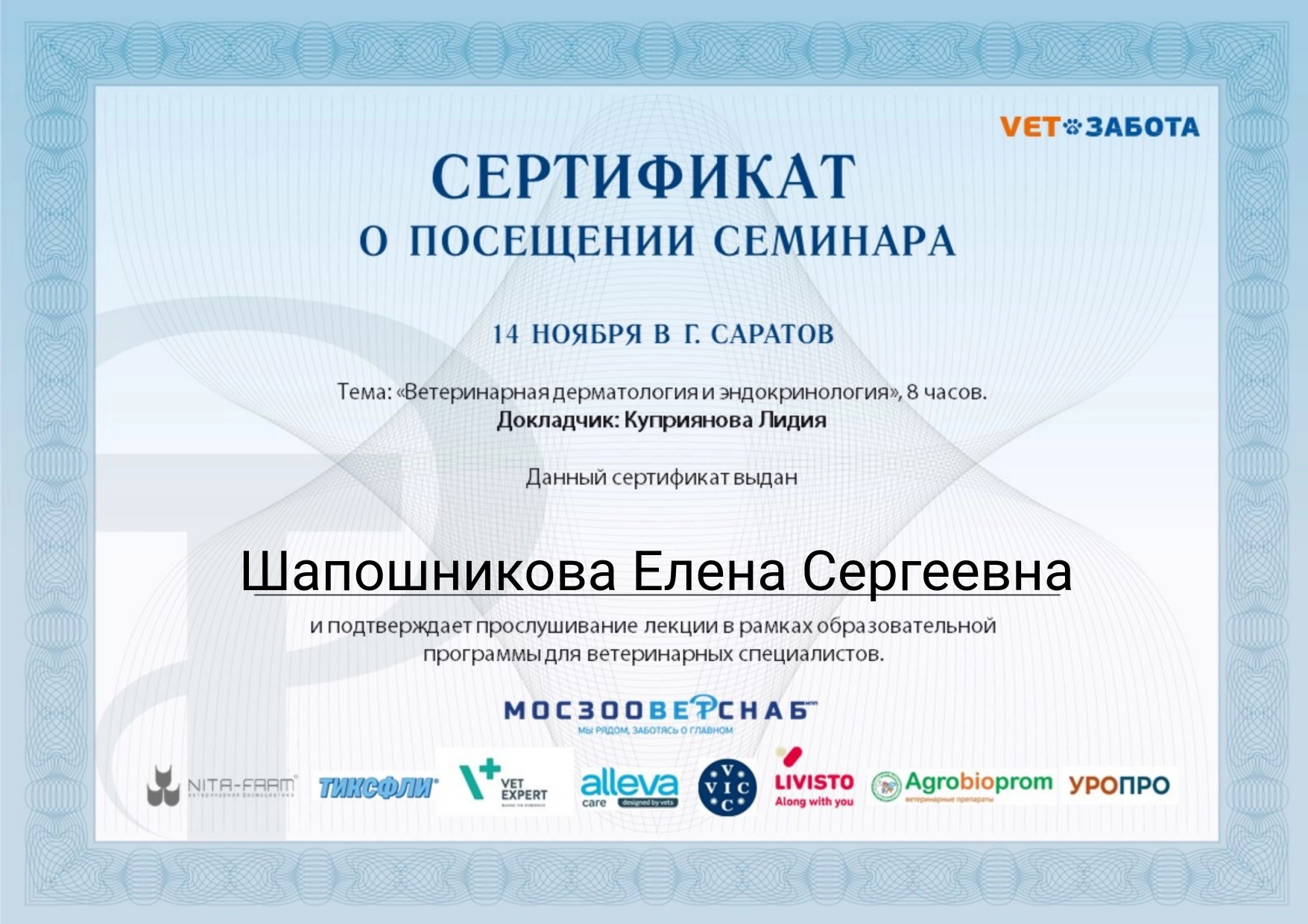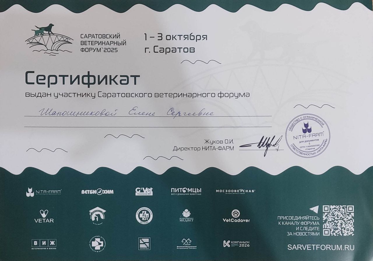 • Участие в Саратовском ветеринарном форуме и терапевтической конференции